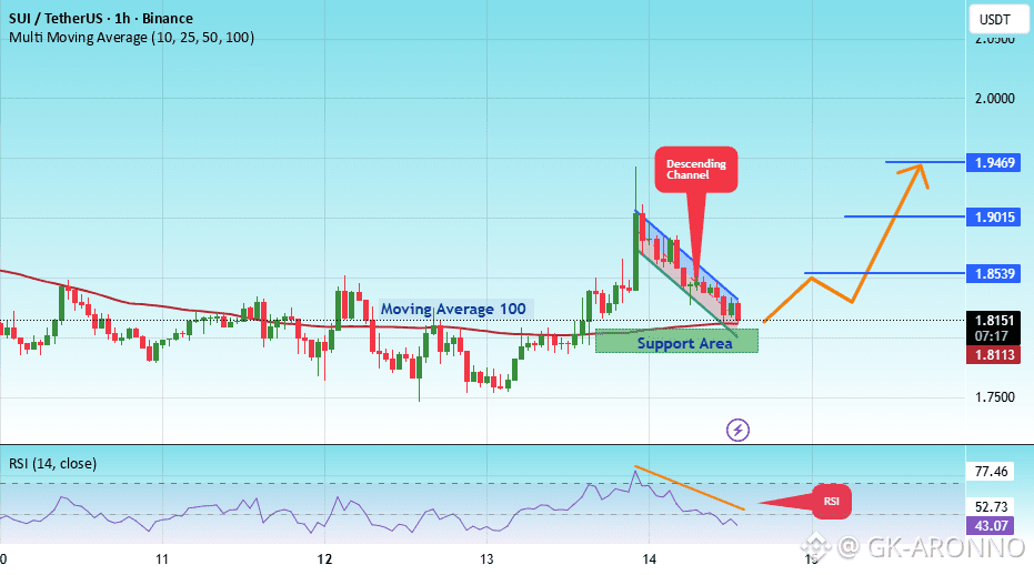 The price is moving within a descending channel on the hourly timeframe. It has reached the lower boundary and is heading towards a breakout, with a retest of the upper boundary expected.