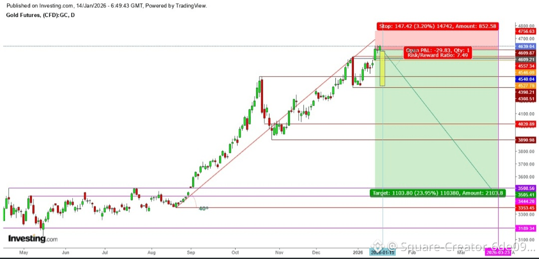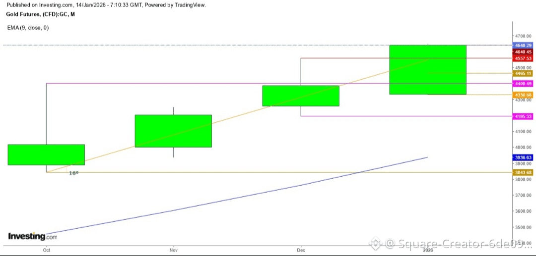في الرسم البياني الشهري، حافظت العقود الآجلة للذهب على اتجاه صعودي منذ أكتوبر 2025، عندما شهدت العقود الآجلة انخفاضًا حادًا خلال ذلك الشهر، ولكنها تواجه الآن مقاومة قوية عند مستوى المقاومة الفوري عند 4640 دولارًا، وقد تفقد بعض المكاسب هذا الشهر إذا لم يتم تأجيل حكم المحكمة العليا اليوم.