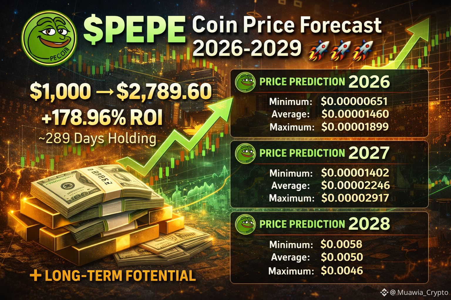 If an investor were to allocate $1,000 into $PEPE at current levels and hold until September 28, 2026, modeled projections suggest a potential portfolio value of approximately $2,789.60, representing: