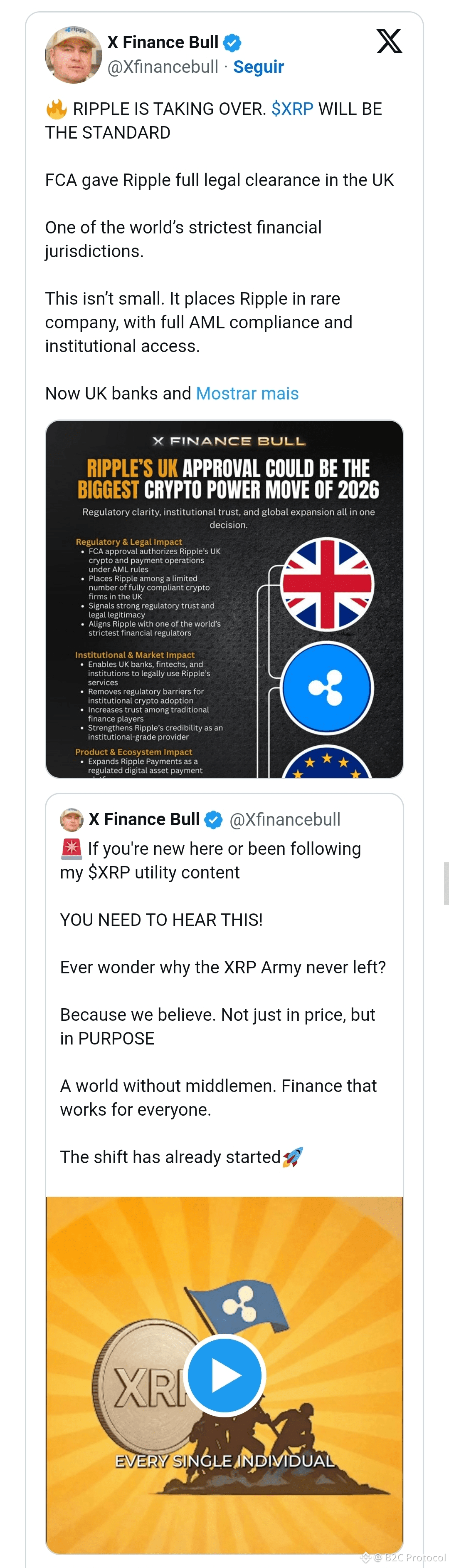 Em uma publicação recente no X, o comentarista de mercado X Finance Bull destacou o progresso regulatório da Ripple no Reino Unido , considerando-o um passo decisivo rumo ao domínio institucional. Sua observação chama a atenção para um marco de conformidade que posiciona a Ripple em uma das jurisdições financeiras mais exigentes do mundo.
