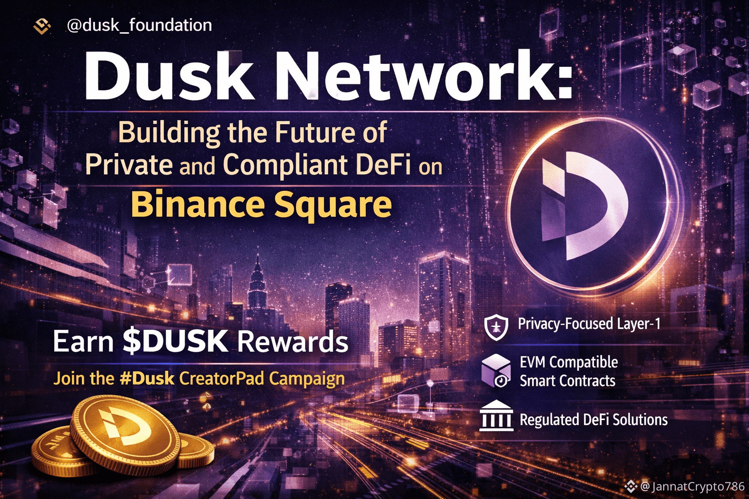 As regulations around digital assets continue to evolve globally, projects like Dusk are becoming increasingly relevant. They demonstrate that privacy and compliance are not opposing forces but complementary pillars of a mature financial system. With strong technical foundations, a clear use case, and growing community engagement through initiatives like Binance Square CreatorPad, Dusk Network is positioning itself as a key infrastructure layer for the future of decentralized finance.