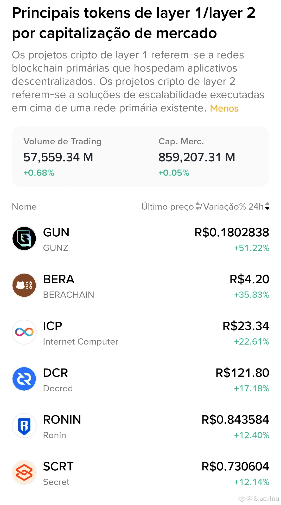 2. Foco em Infraestrutura: Layer 1 e Layer 2 são a base do ecossistema. Quando eles sobem, geralmente é um sinal de confiança a longo prazo.