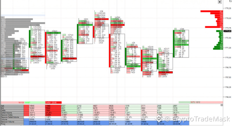 • Кластер: Комірка всередині свічки, що відображає кількість проторгованих контрактів на конкретній ціні.