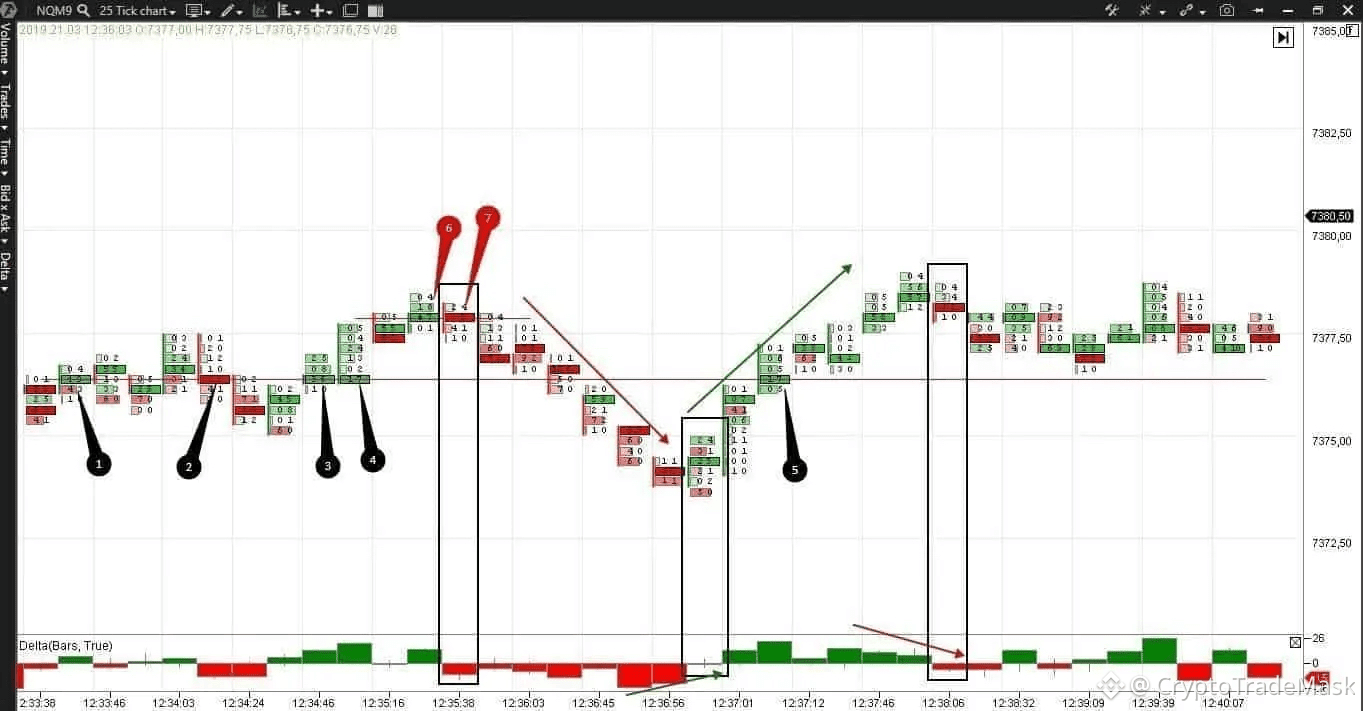 • Дельта (\Delta): Різниця між ринковими покупками (Ask) та ринковими продажами (Bid).