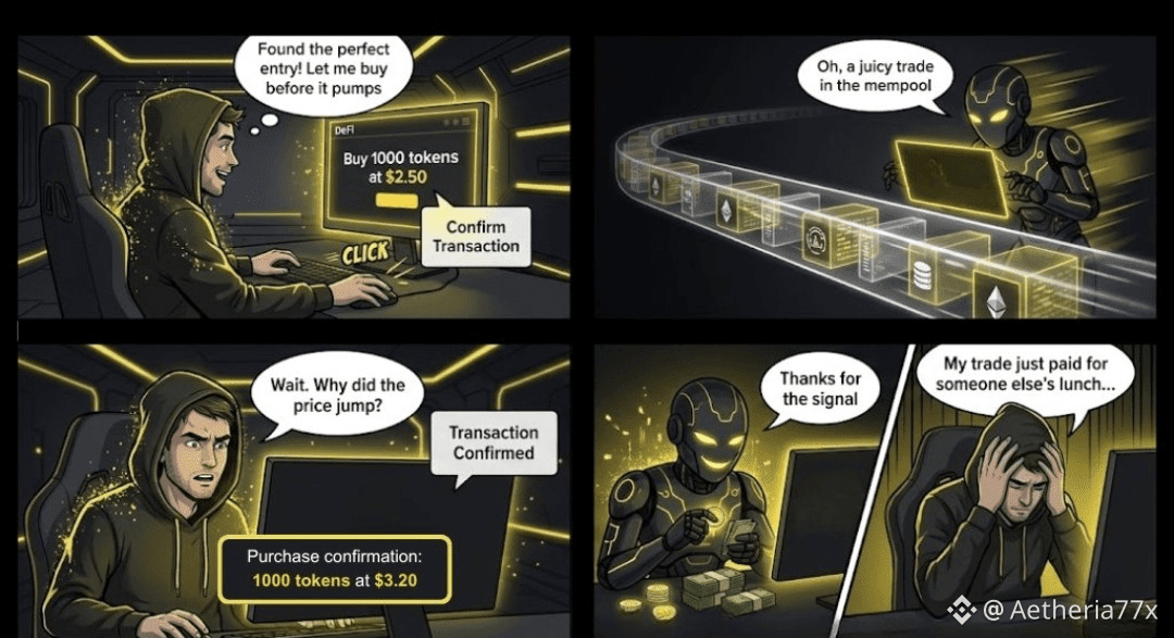 En gros : tu veux acheter, mais comme ta transaction est visible par tous dans la "mempool", un robot passe devant toi à la vitesse de l'éclair, fait monter le prix, et tu finis par payer plus cher.