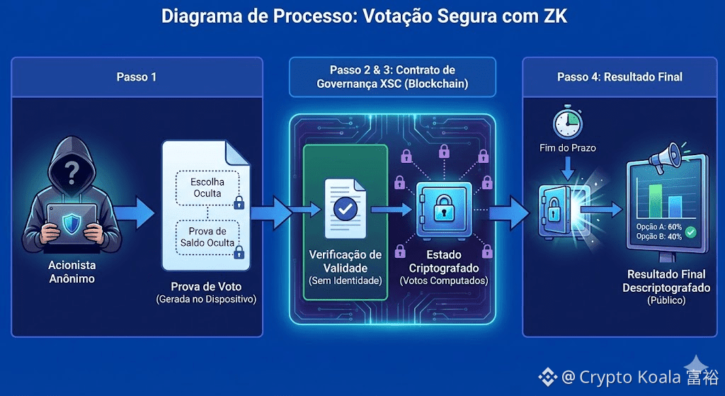 O segundo pilar do XSC é a governança. Em 2025, o ativismo de acionistas tornou-se uma ferramenta geopolítica. Fundos soberanos e grandes gestoras precisam votar em assembleias de empresas estratégicas, mas muitas vezes desejam manter suas intenções de voto privadas até o momento da revelação, para evitar manipulação de mercado.