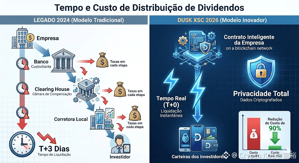 A visualização confirma a tese de investimento institucional na Dusk. A redução do tempo de liquidação de T+3 (três dias após a negociação) para T+0 (instantâneo) libera trilhões de dólares em capital que antes ficava "preso" em garantias de contraparte. Para um CFO de uma multinacional em 2026, emitir ações na Dusk via XSC significa ter acesso direto aos seus investidores, eliminando a opacidade e o custo da cadeia de custódia tradicional.