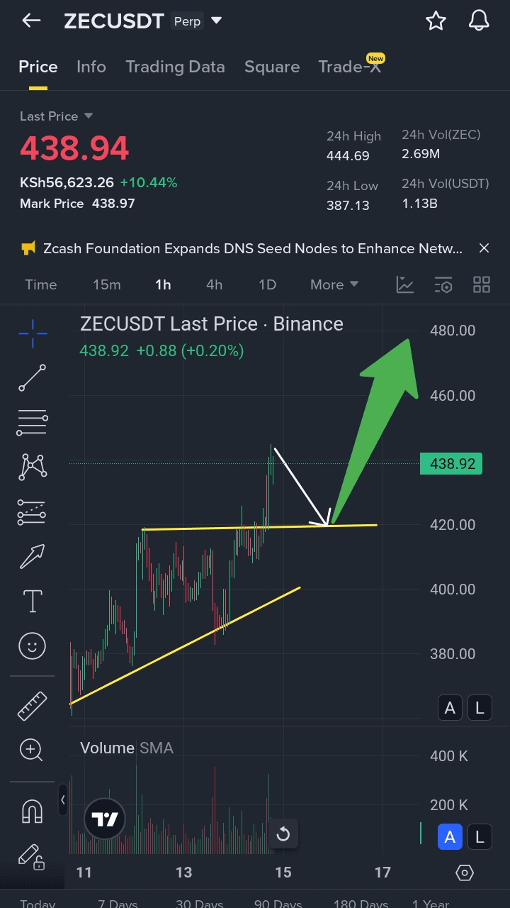 ZEC ha risposto con forza, superando la resistenza dei $420 e confermando una struttura di mercato rialzista.