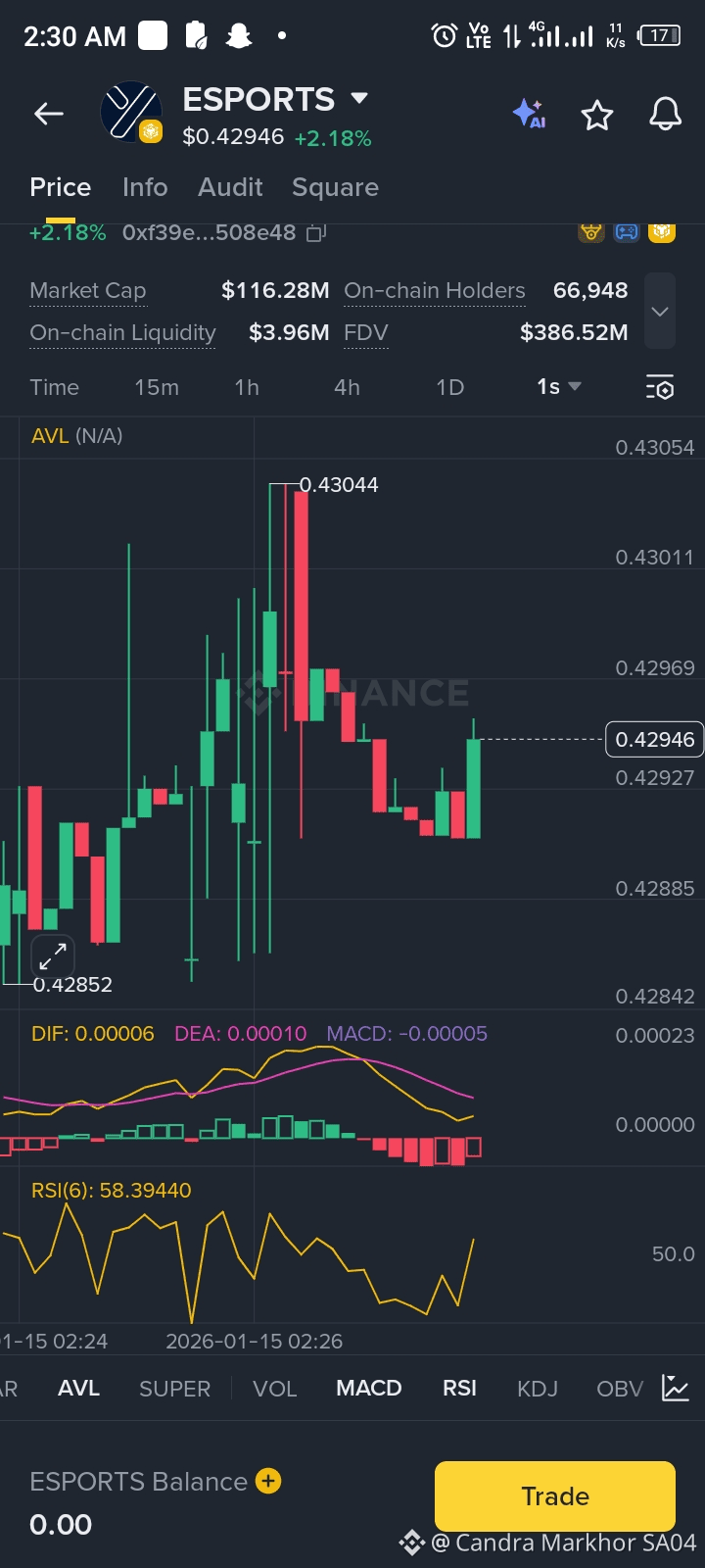 $ESPORTS Coin is currently trading in the Alpha category, indicating an early-stage asset with speculative growth potential. From a candlestick perspective, recent price action shows tight consolidation and volume stabilization, which often appears before expansion moves in low-cap assets. Such structures are commonly used by early participants for accumulation and medium-term holding, rather than short-term scalping. If momentum continues and the project secures a Binance launch or wider exposure, historical market behavior suggests a strong chance of volatility expansion and price re-rating, offering favorable sell zones at higher levels. That said, Alpha coins remain high-risk, so disciplined position sizing, patience, and a predefined exit strategy are essential. This setup is best suited for early-entry holders, not for over-leveraged trading.