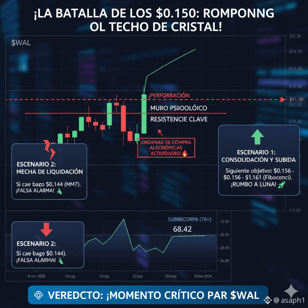 En el gráfico, la situación es de suspenso puro. El 9 de enero, $WAL logró algo que no hacía desde diciembre: perforar la resistencia de los $0.150. Esta no era una línea cualquiera; era un muro psicológico donde los "osos" habían acampado durante semanas.
