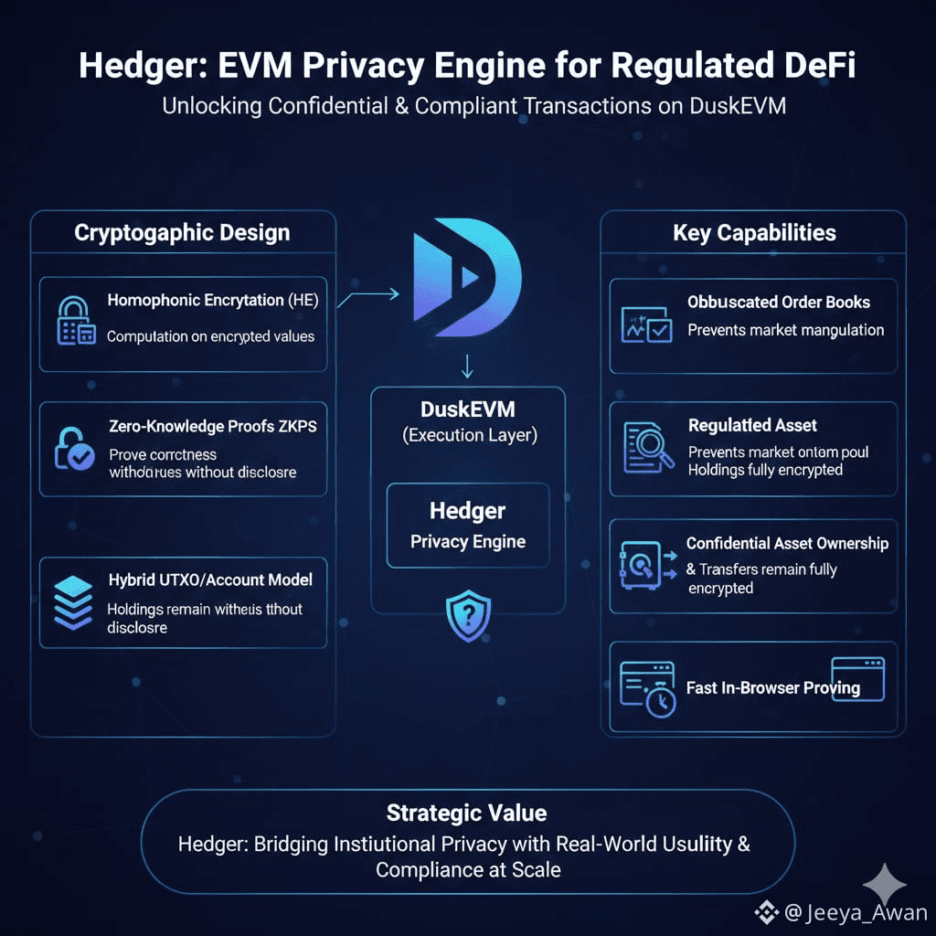 As Dusk evolves into a modular architecture, it introduces Hedger, a new privacy engine purpose-built for the EVM execution layer.