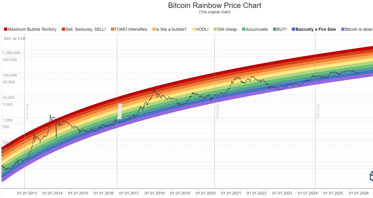 Amici miei, quello che sta accadendo adesso è pazzesco. Anche se vedere la regina delle criptovalute a quel prezzo sembra indicare che abbiamo raggiunto il tetto, la realtà tecnica ci racconta una storia diversa. Il grafico arcobaleno del Bitcoin, che è fondamentalmente la mappa che usiamo noi che ci occupiamo di questo da anni per non perdere il controllo tra tanta volatilità, ci sta segnalando una zona di sconto aggressiva. 🌈💎