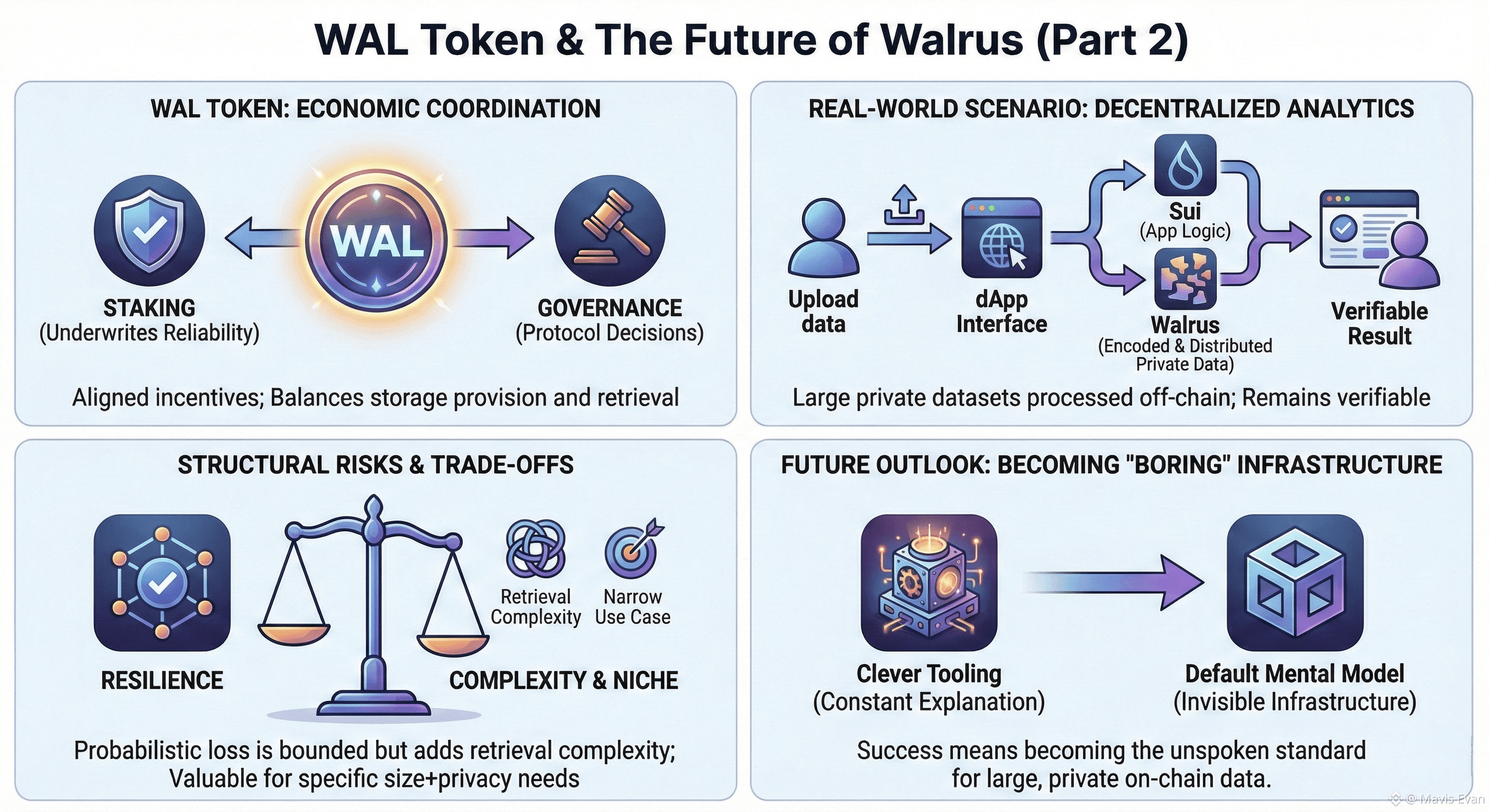 Over time, this infrastructure will succeed or fail based on whether it becomes boring. Not in the sense of being ignored, but in the sense that teams stop thinking about how their data is stored at all. If Walrus becomes the default mental model for handling large private datasets on-chain, then the WAL token will represent a functioning economic backbone. If it remains a clever system that requires constant explanation, it will struggle to escape the category of interesting but optional tooling.