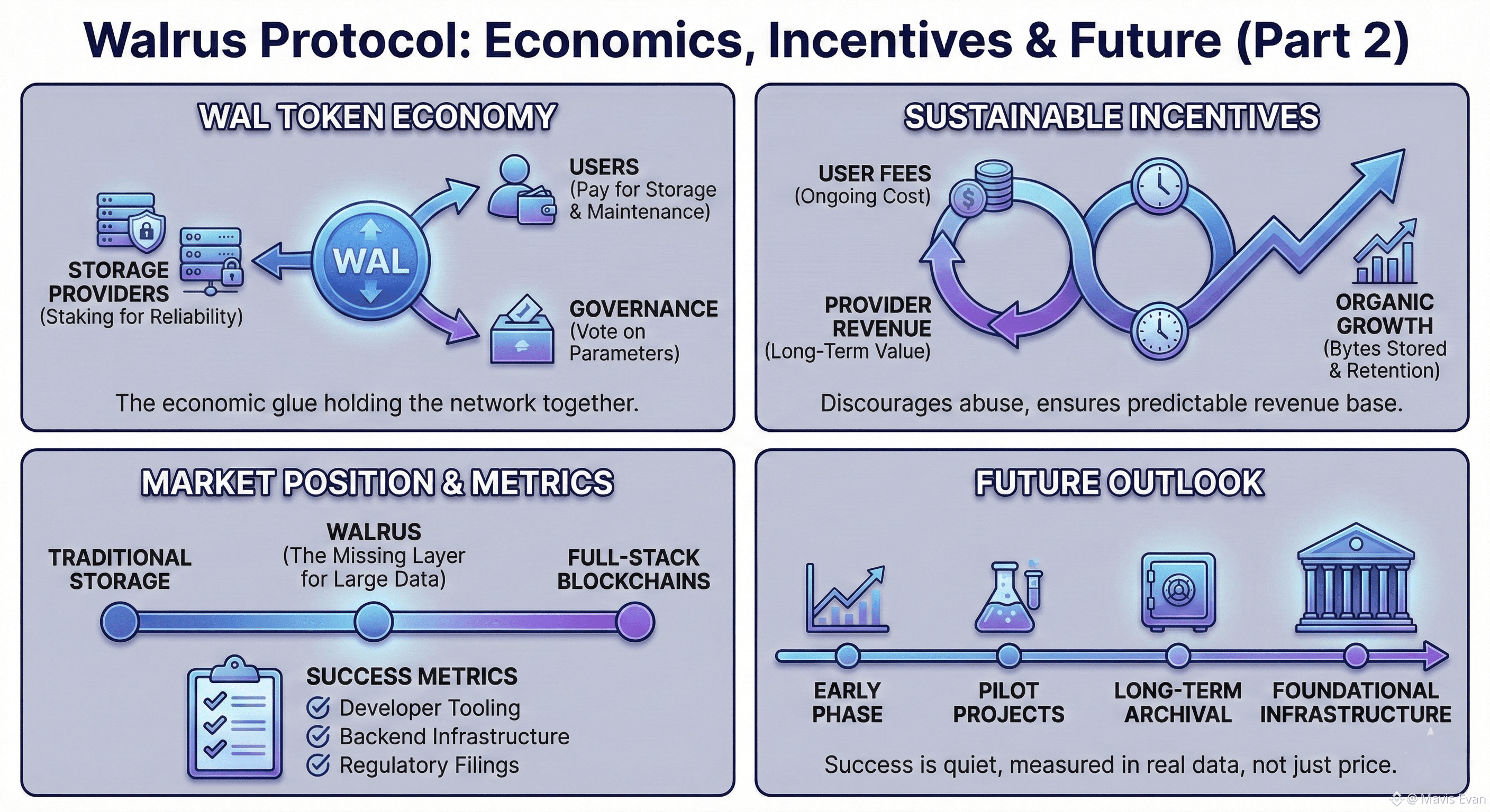If current trends hold, Walrus will not become a household name among retail traders. Its success will be quieter, reflected in developer tooling, backend infrastructure choices, and regulatory filings rather than in social media metrics. In an industry that often measures progress in token price alone, a storage protocol forces a different conversation. It asks whether blockchains are ready to store more than numbers.