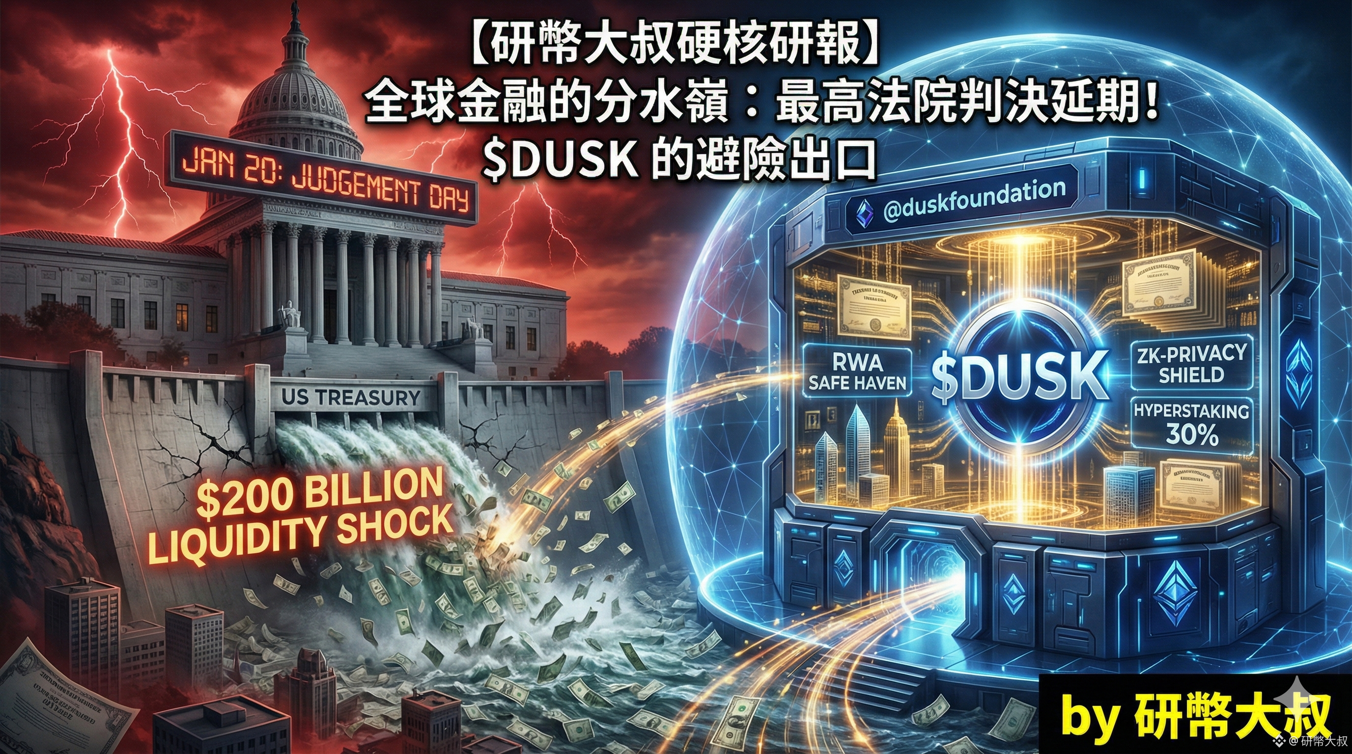 * 折衷式的「部分違法」(機率約 15%): 法院可能只允許「國安相關」的關稅(如 1/14 剛簽署的半導體關稅)維持有效。這會讓市場陷入極大不確定性,資金將本能地尋求像 #DUSK 這種符合 MiCA 標準、規則明確的「技術中立區」。