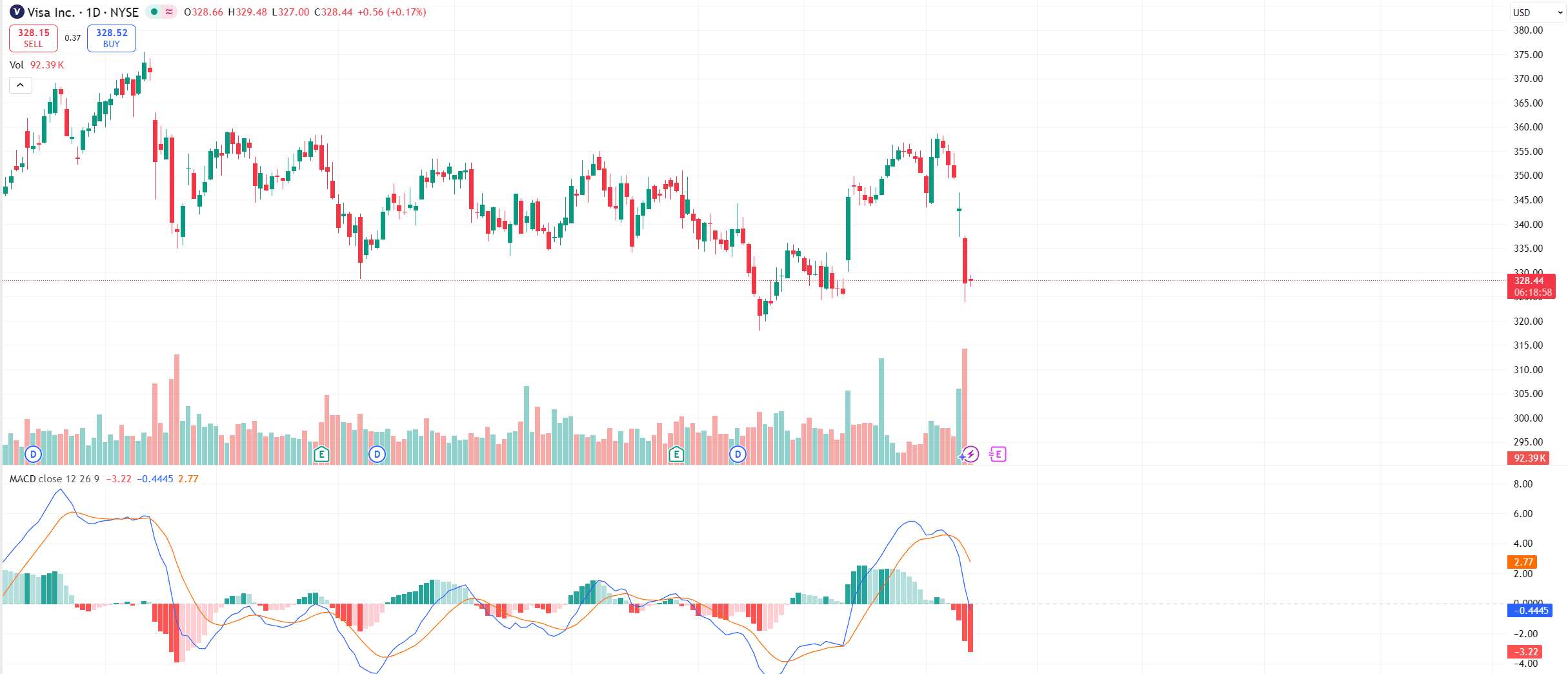 Alla data del 14 gennaio alle 22:40, V ha riportato circa 328,44 dollari, +0,17% nella giornata (in intraday).