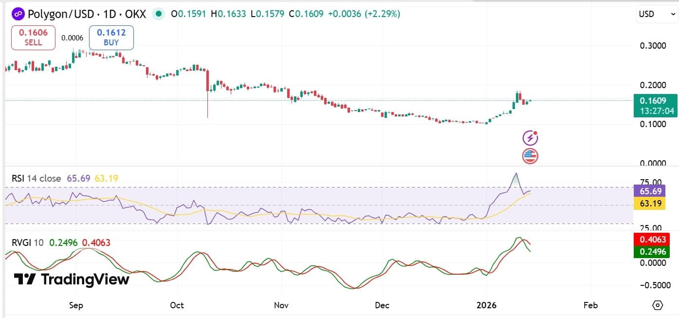 In precedenza, il prezzo di POL ha raggiunto un massimo di 0,18 dollari, ma ha subito una forte vendita, scendendo fino a 0,15 dollari, e al momento si sta stabilizzando intorno a 0,16 dollari.