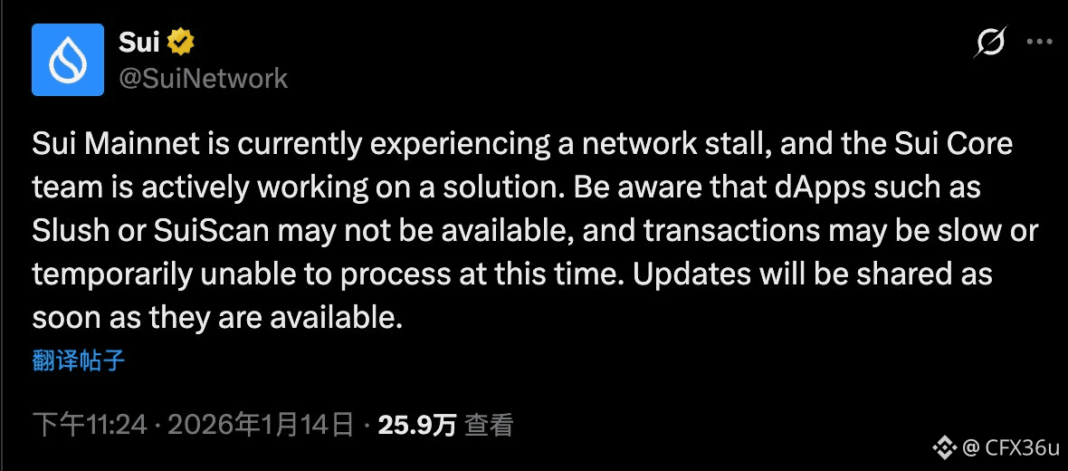 北京时间 1月14日 23:30 左右,@SuiNetwork 主网突然停止出块,所有的 DApp 和交易一度陷入静止。
