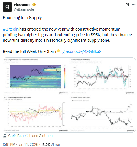 Il rialzo è seguito a un forte breakout oltre i 96.000 dollari, continuando un recupero rialzista iniziato all'inizio di gennaio. Sorprendentemente, questa dinamica si è consolidata anche mentre l'Indice dei Prezzi al Produttore (PPI) statunitense è aumentato del 3% rispetto all'anno precedente, il livello più alto dal mezzo del 2025 — un segnale solitamente negativo per gli asset a rischio.