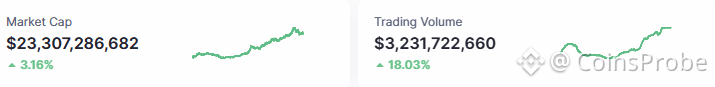 Zooming out, the privacy coin sector is showing clear signs of expansion. Combined market capitalization for leading privacy-focused assets is approaching $23 billion, up about 3.16%, while trading volumes have surged more than 18% to over $3 billion.