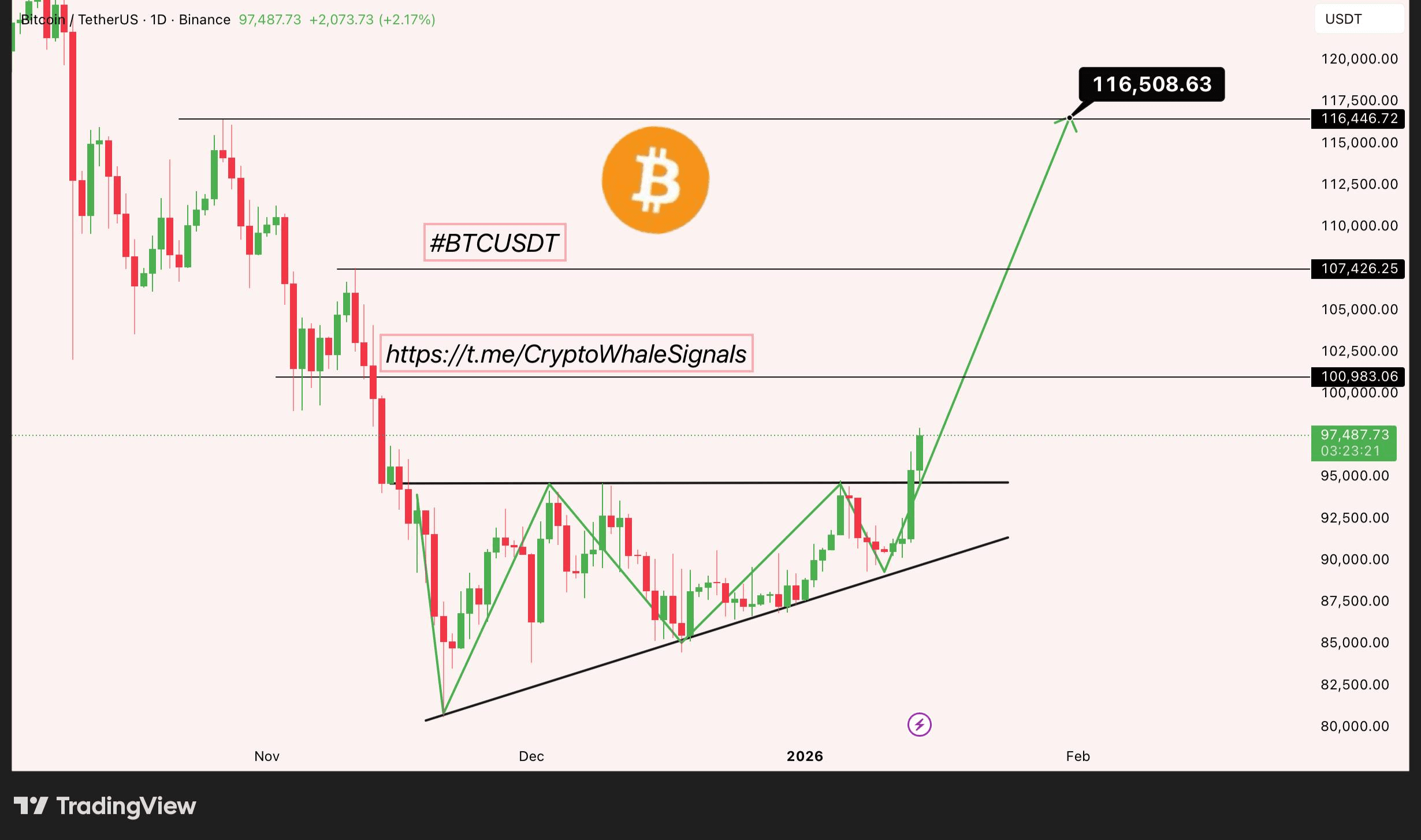 Il Bitcoin (\u003cc-31/\u003e) continua a mostrare un forte impulso rialzista mentre il prezzo si stabilizza sopra un supporto tecnico chiave. Con la struttura di mercato intatta e gli acquirenti che difendono attivamente i ribassi, BTCUSDT è posizionato per un potenziale movimento verso il livello di 116.500 dollari.