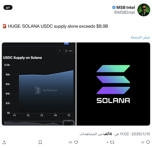 L'offerta di $USDC sulla rete Solana è salita a oltre 8,9 miliardi di dollari, segnando un punto cruciale per la rete. Questa crescita riflette un aumento della fiducia in Solana come piattaforma affidabile per l'attività delle criptovalute stabili. Gli utenti scelgono sempre più regolamenti rapidi e costi bassi, vantaggi che Solana offre costantemente. Di conseguenza, l'adozione di USDC sulla rete continua a crescere attraverso molteplici casi d'uso.