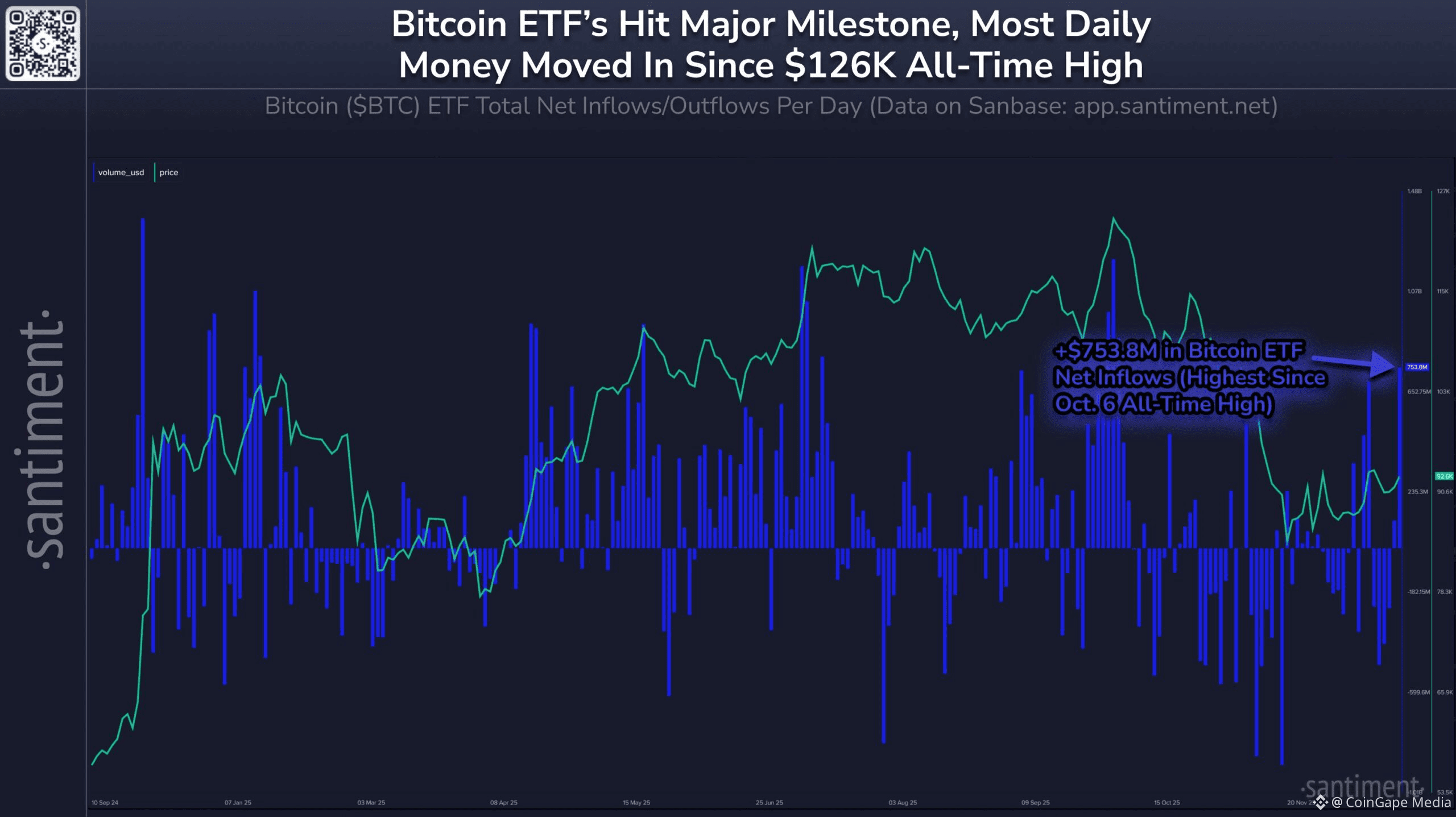 The rally is being propelled by institutional investors, as ETFs have had a net inflow of $843.6 million in the recent past. This is the largest one-day movement since the 1.21 billion jump on the 6th of October.
