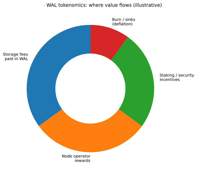 La parte interessante è la direzione: Walrus rende abbastanza chiaro che la pressione deflazionaria è un risultato dell'uso (bruciamento con le transazioni), ovvero l'offerta può diminuire con l'adozione (più caricamenti / pagamenti) in modo meccanico. E i loro articoli si concentrano sulla sostenibilità economica a lungo termine: le ricompense possono essere basse all'inizio ma destinate ad aumentare con la dimensione della rete, e le forze di mercato possono ricapitalizzare parte dei guadagni agli utenti riducendo i costi di archiviazione.