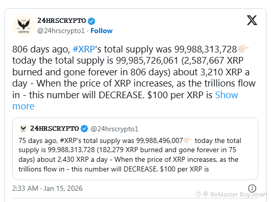 The assertion that the asset will reach $100 remains an opinion, not a guaranteed outcome. However, the argument presented by 𝟸𝙷𝚁𝚂𝙲𝚁𝚈𝙿𝚃𝙾 rests on observable mechanics rather than hype. XRP’s supply continues to shrink, and its utility model demands higher value per token as transaction volumes grow.