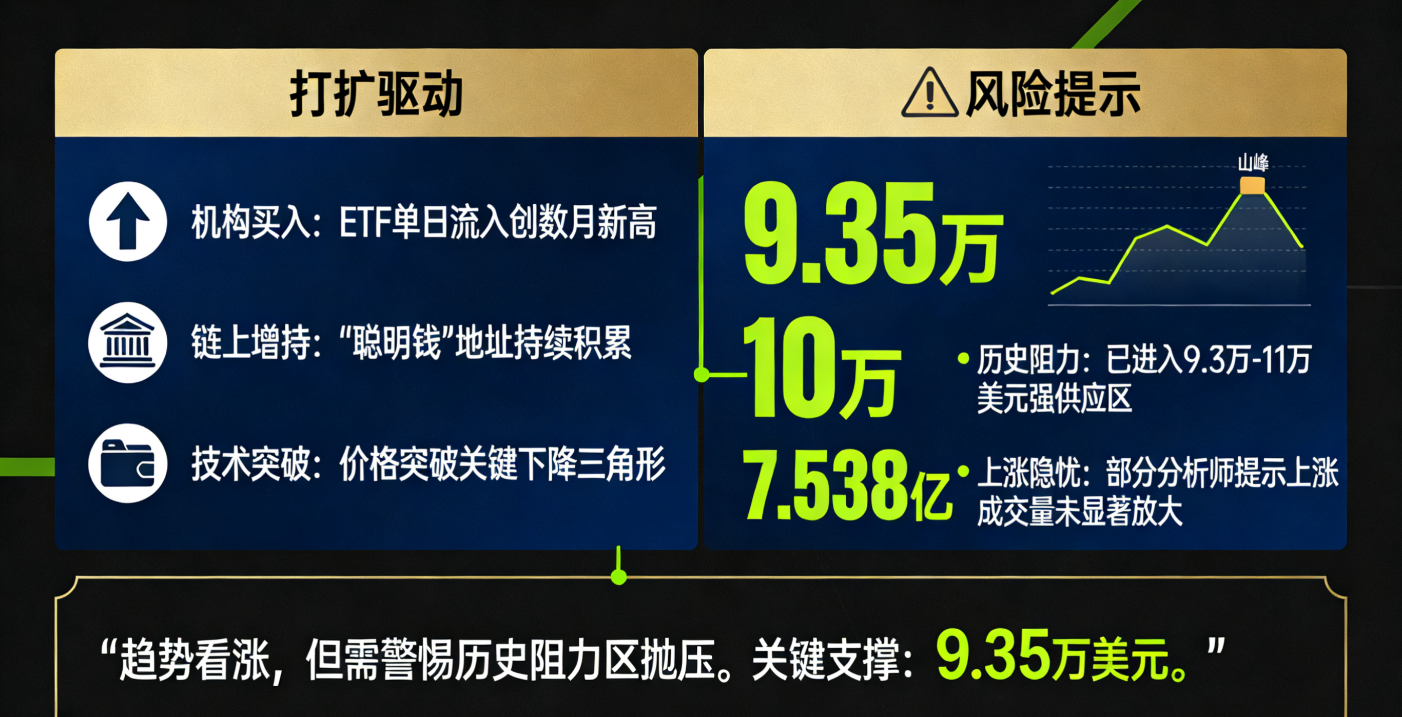 · Il punto tecnico chiave è stato superato: dai grafici, il prezzo non solo si è stabilizzato sopra il importante livello psicologico di 93.500 dollari, ma ha anche rotto un triangolo discendente che è durato diversi mesi. Nel mio sistema di analisi, questo è un segnale molto positivo.