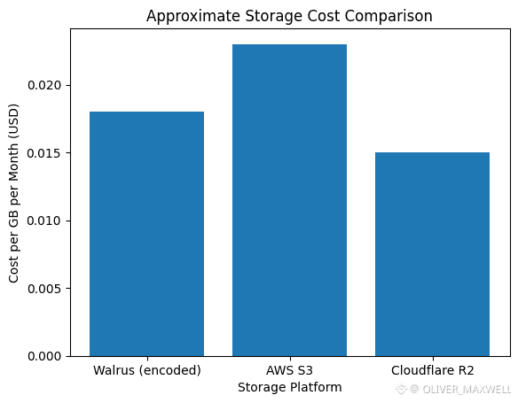 Now compare that to the pricing pressure from traditional cloud storage, because this is where Walrus’ positioning gets counterintuitive. AWS S3 Standard storage is commonly priced around $0.023 per GB month in major regions for the first tiers, and Cloudflare R2 lists storage around $0.015 per GB month. If you only compare raw $ per GB month, decentralized networks often look uncompetitive or at best roughly similar depending on token prices and subsidies. Walrus is not likely to win on raw storage alone, especially once you account for encoding overhead and any integration costs. Walrus is trying to win on what the cloud cannot productize without becoming something else, a public verifiable availability layer whose receipts are directly legible to smart contracts on Sui. In other words, it is monetizing a property that cloud providers deliberately hide behind private SLAs and legal terms. The economic question then becomes less “is it cheaper than S3” and more “what is the value of making storage guarantees machine verifiable and composable,” because that is what enables entirely different application designs.