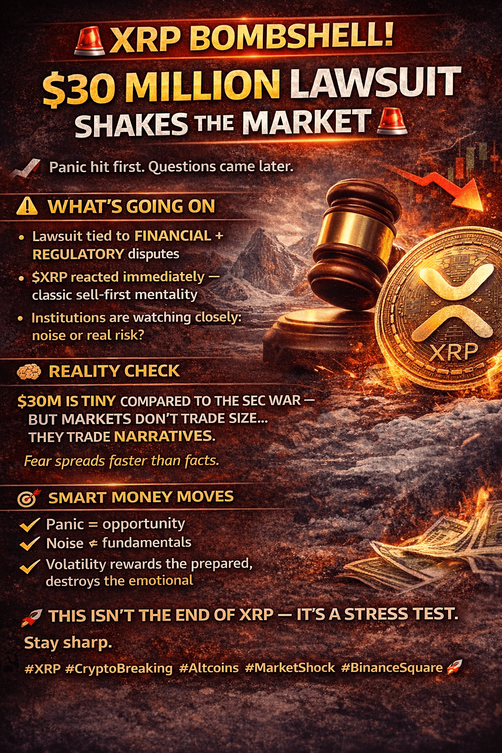 Le voci si diffondono velocemente che una figura chiave legata a XRP sta affrontando una causa per 30 milioni di dollari — e i trader non hanno aspettato la conferma.