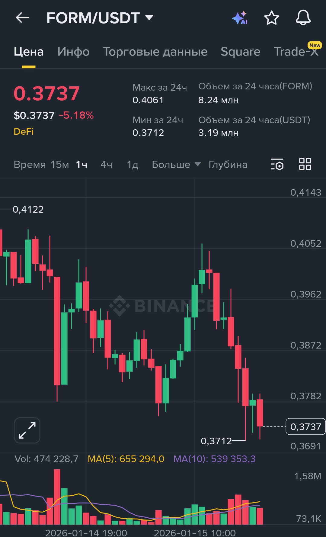 Secondo lo schermo FORM/USDT (1h):