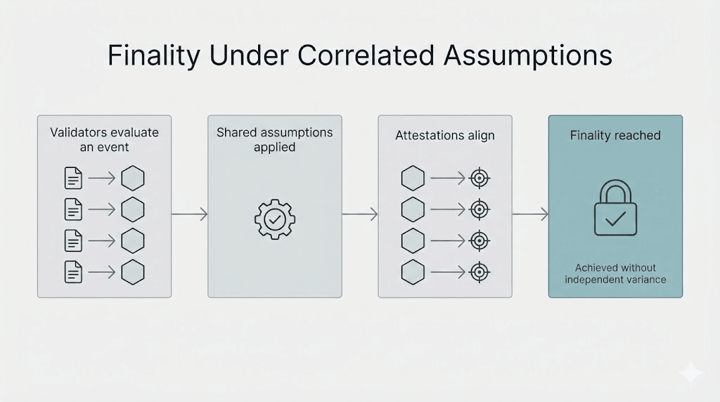 E una volta che ciò accade, la finalità deterministica diventa un po' ingannevole. Ti dice che la rete si è finalizzata. Non ti dice quanto il comitato si sia avvicinato a esprimere un singolo errore condiviso come risultato verificato dal consenso.