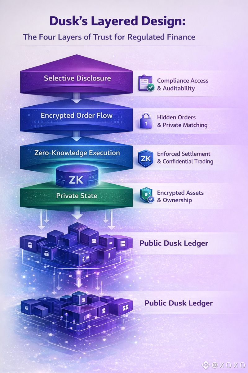 Dusk’s layered design exists because no single blockchain reality can satisfy all of these at once.