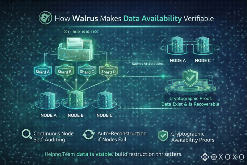 Walrus treats data as an ongoing obligation. The network is constantly checking whether the data still exists in enough places to be reconstructable. Availability becomes a moving target that must be maintained.