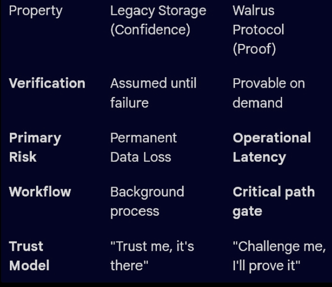 Walrus non elimina il fallimento; rimuove la possibilità di nascondersi dietro di esso. Su larga scala, la fiducia diventa un arretrato. Non puoi più nasconderti dietro la "fiducia" quando la verifica è in ritardo. Questo crea un cambiamento culturale: dobbiamo smettere di chiedere "I dati sono al sicuro?" e iniziare a chiedere "Possiamo difenderli ora?"