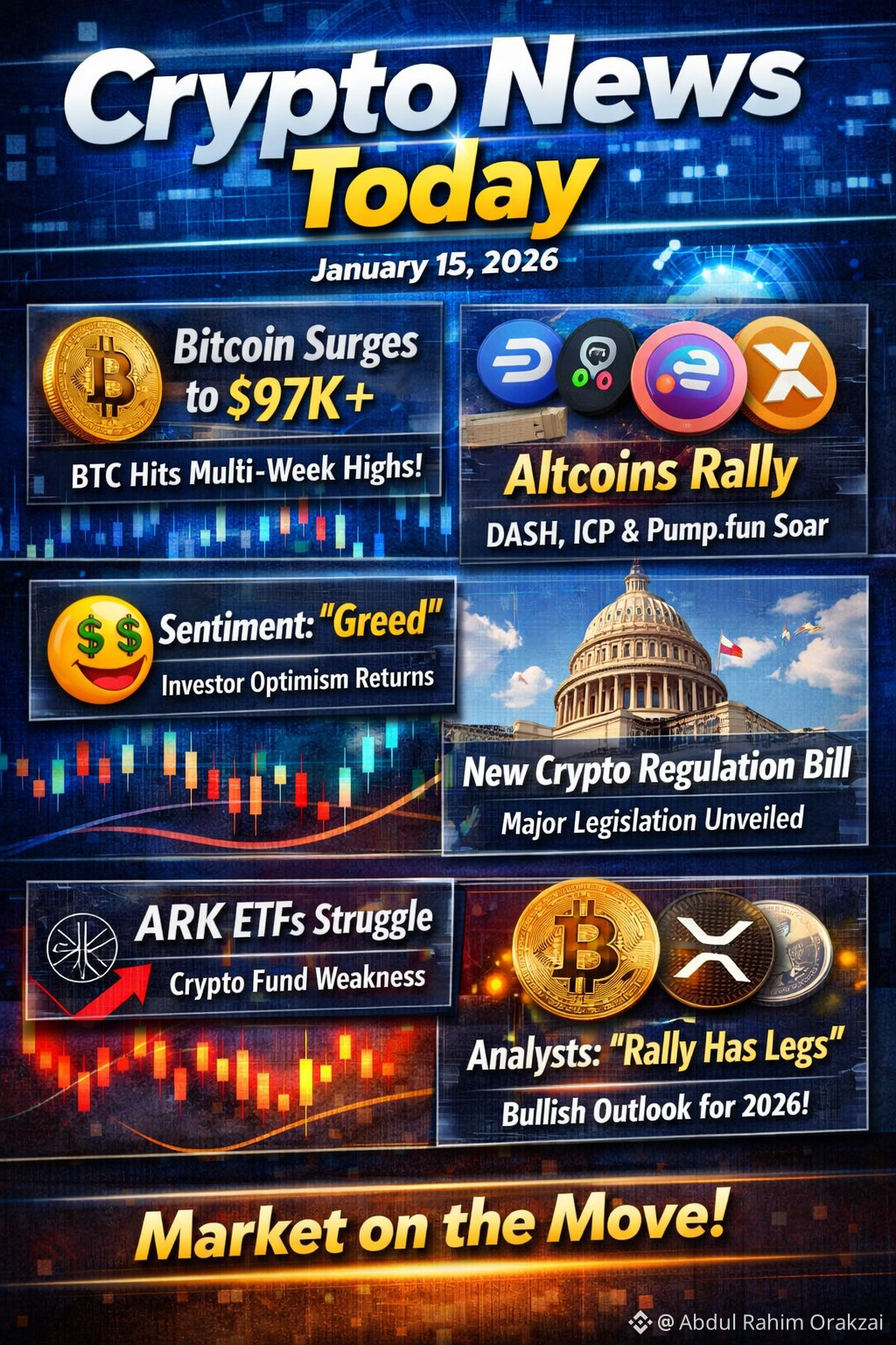 🔥 Market & Price Moves • 📈 Bitcoin nears $97K — BTC holding strong near major resistance levels amid positive market sentiment.