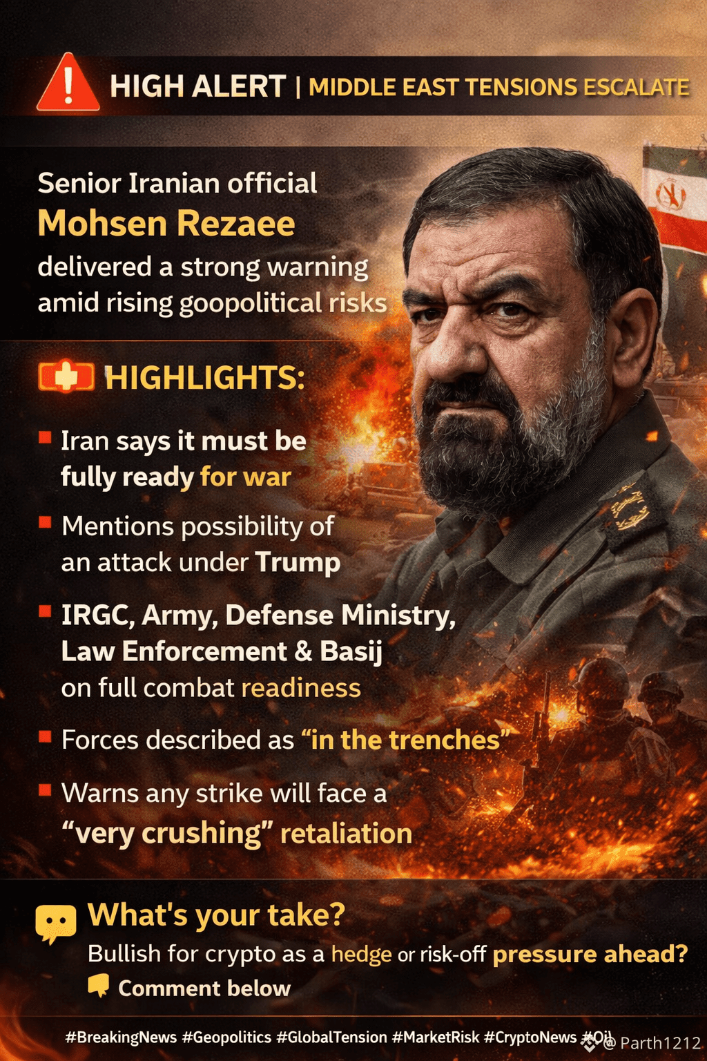 Senior Iranian official Mohsen Rezaee delivered a strong warning amid rising geopolitical risks.