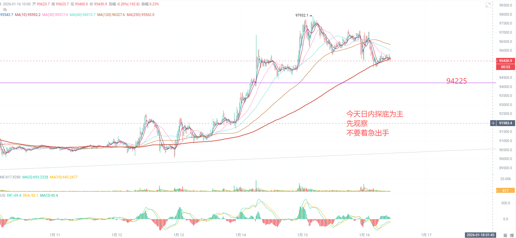 Ieri, il livello di interesse aggressivo a 95115 non ti ha spinto a inserire un ordine di acquisto, ma hai dovuto monitorare il mercato durante la notte. In realtà, ti ho consigliato di non inserire ordini e di dormire bene, perché oggi è il momento principale!