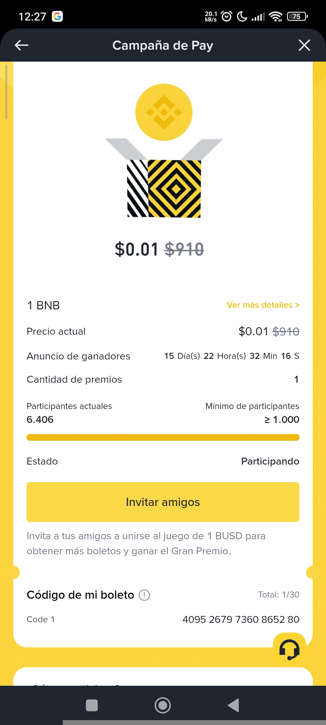Luego te aparece un código de boleto: Eso confirma que ya estás participando ahora solo queda esperar los resultados