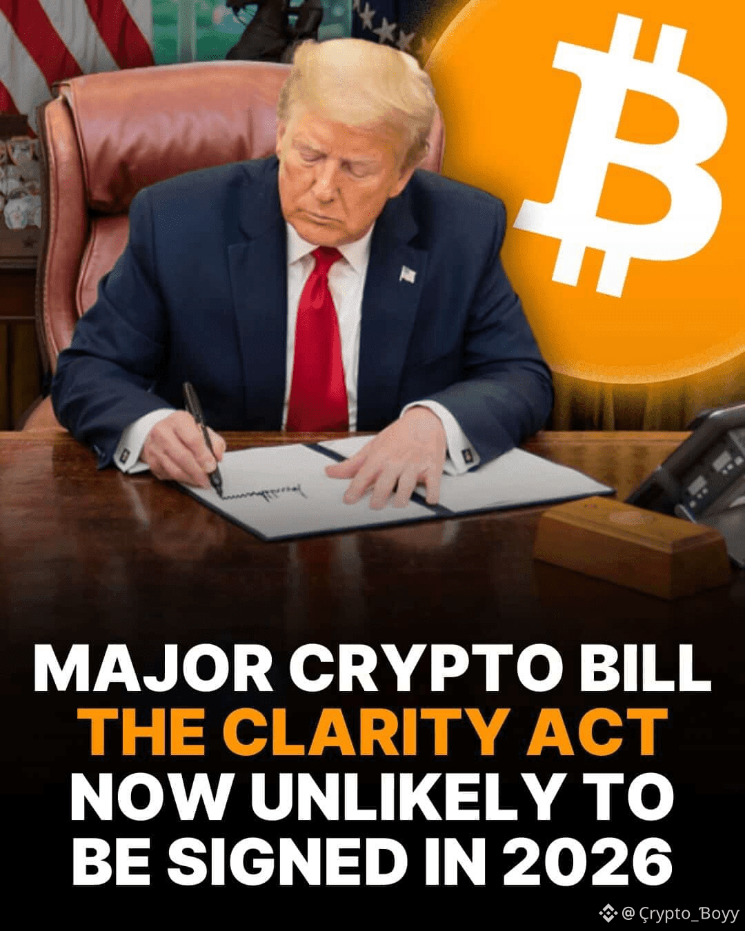 💥 Breaking Update: The U.S. Clarity Act, once hailed as the defining crypto legislation, is now facing serious delays. Sources indicate that 2026 is unlikely to see it signed into law.