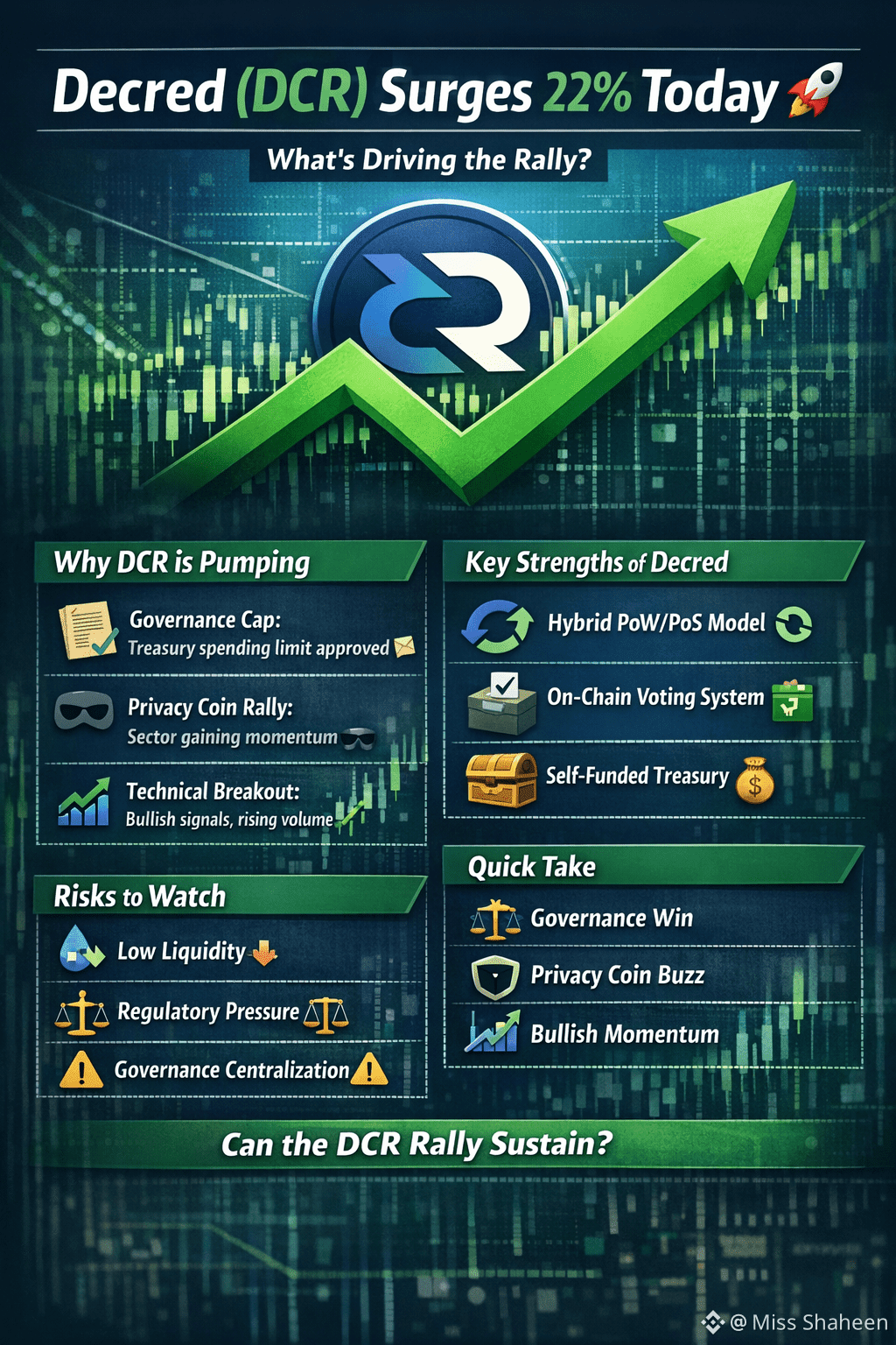 $DCR is being dragged up along with other privacy-focused cryptos (like Dash, Monero) as traders rotate into this niche. This broad sector strength is lifting DCR today. �