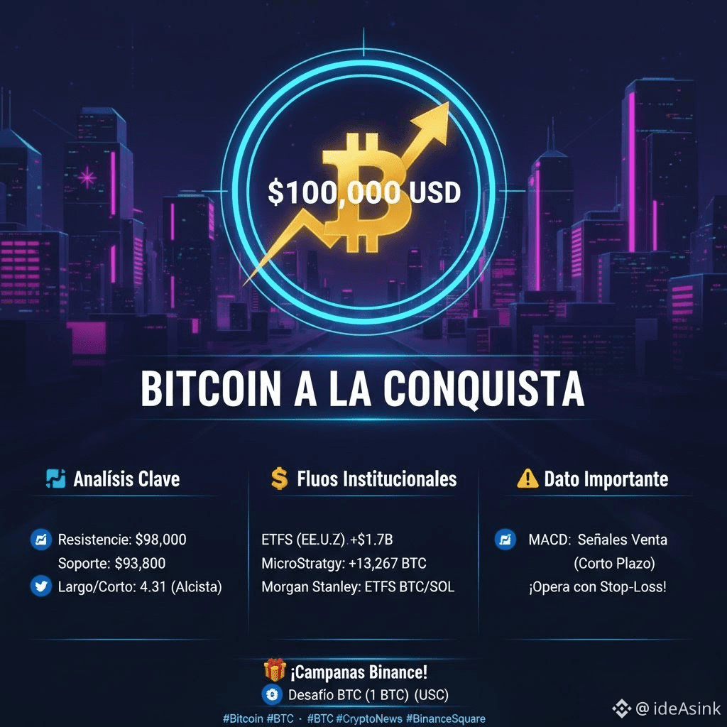 * Resistencia: El muro a vencer son los $98,000. Si lo rompemos, el siguiente objetivo psicológico son los $100,000 🎯.