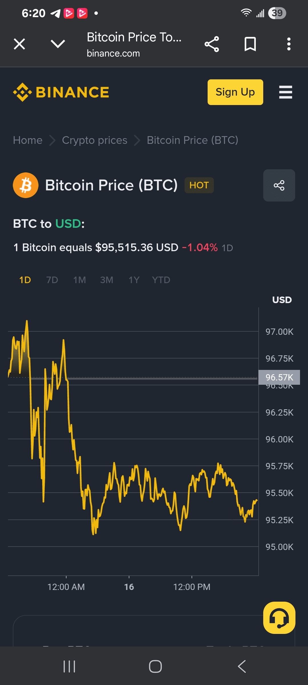 L'analisi di mercato di oggi (16 gennaio 2026) mostra che il Bitcoin è attualmente in uno stato forte ma piuttosto volatile. Il Bitcoin sta negoziando intorno al range di $95,000 a $96,000.