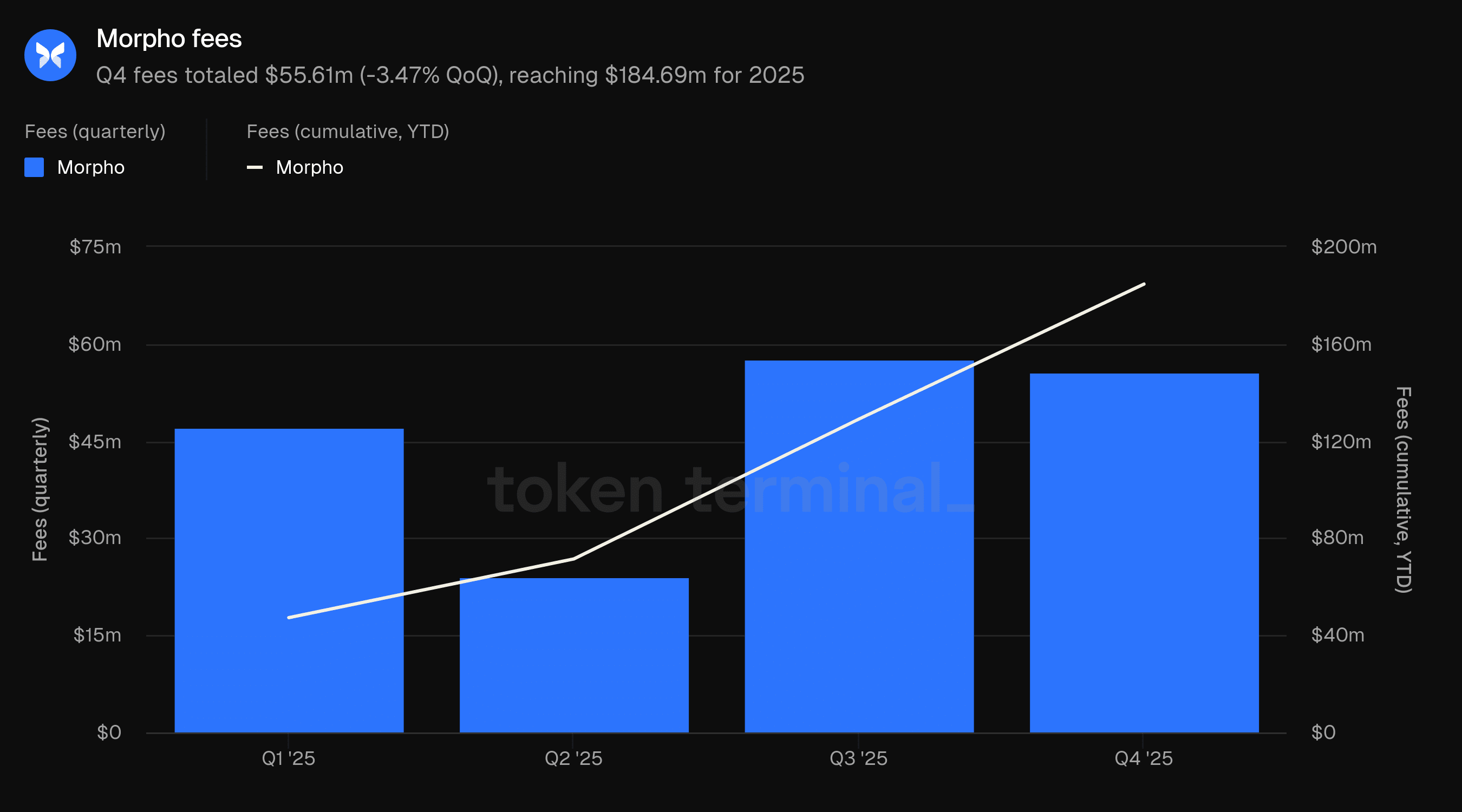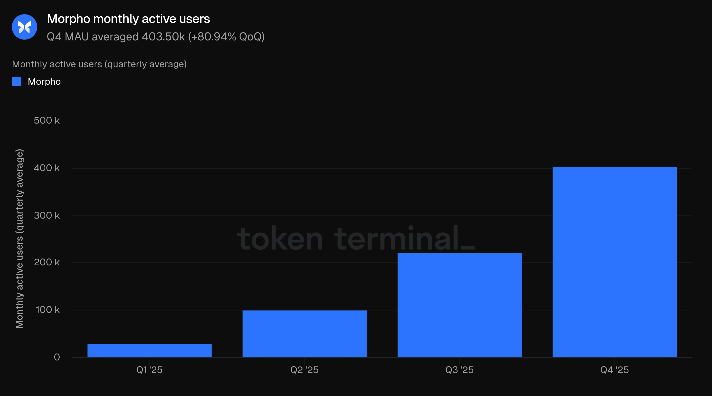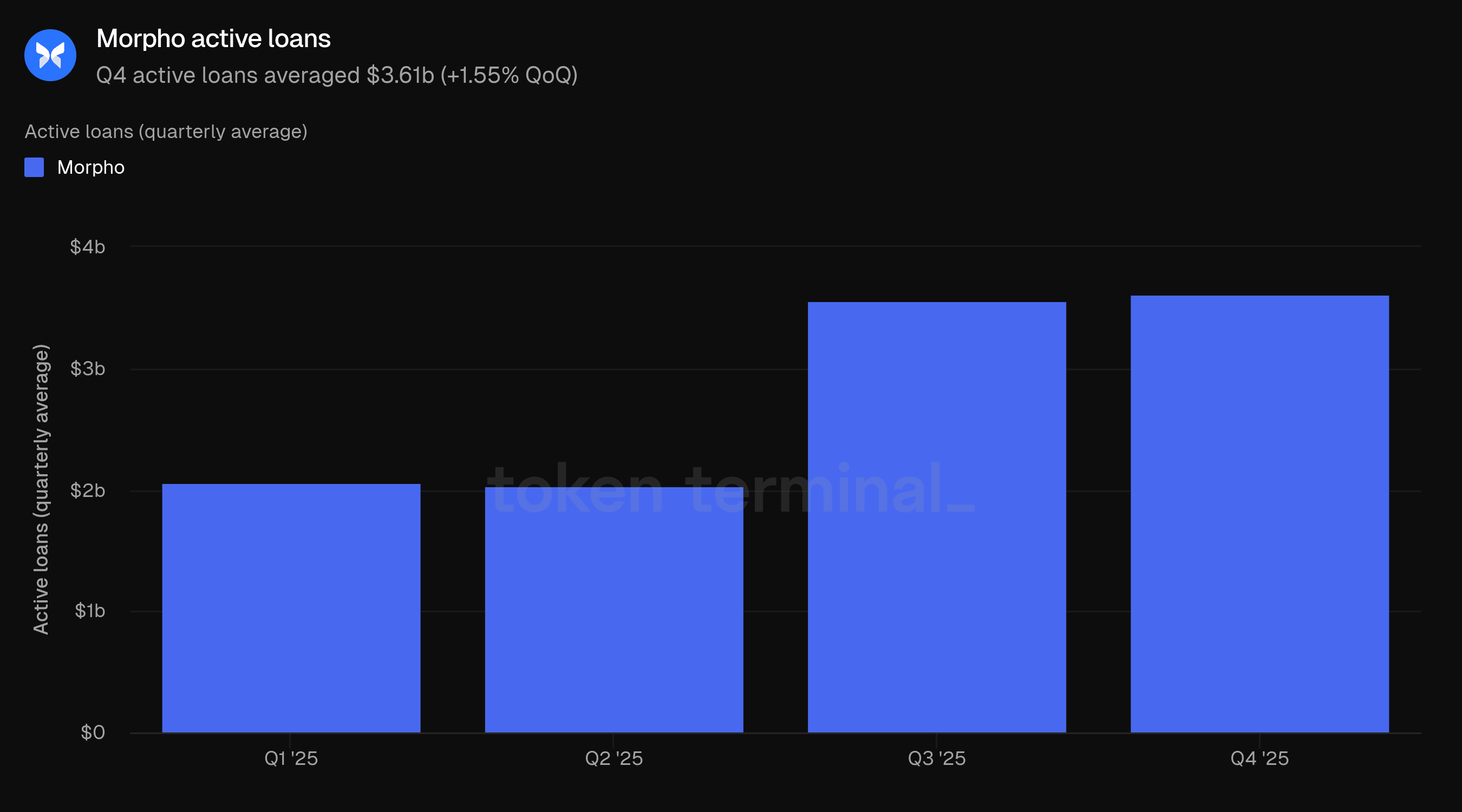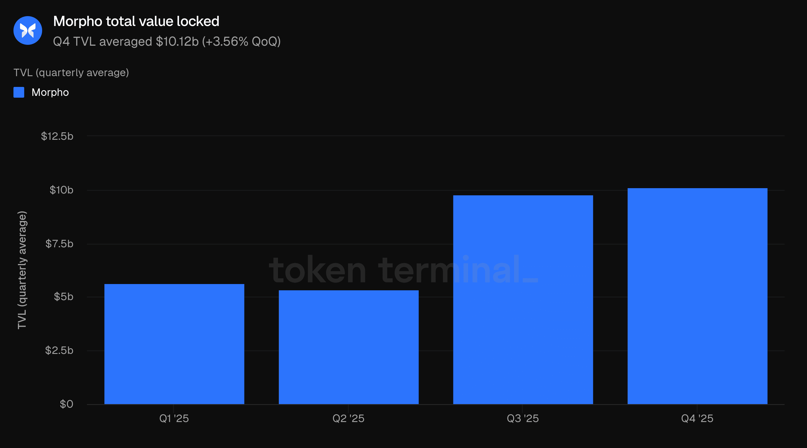 Questo rapporto viene pubblicato trimestralmente e prodotto sfruttando l'infrastruttura di dati on-chain end-to-end di Token Terminal. Tutte le metriche sono ottenute direttamente dai dati della blockchain. I grafici e i dataset citati in questo rapporto possono essere visualizzati nel corrispondente cruscotto del Rapporto Q4 2025 di Morpho su Token Terminal.