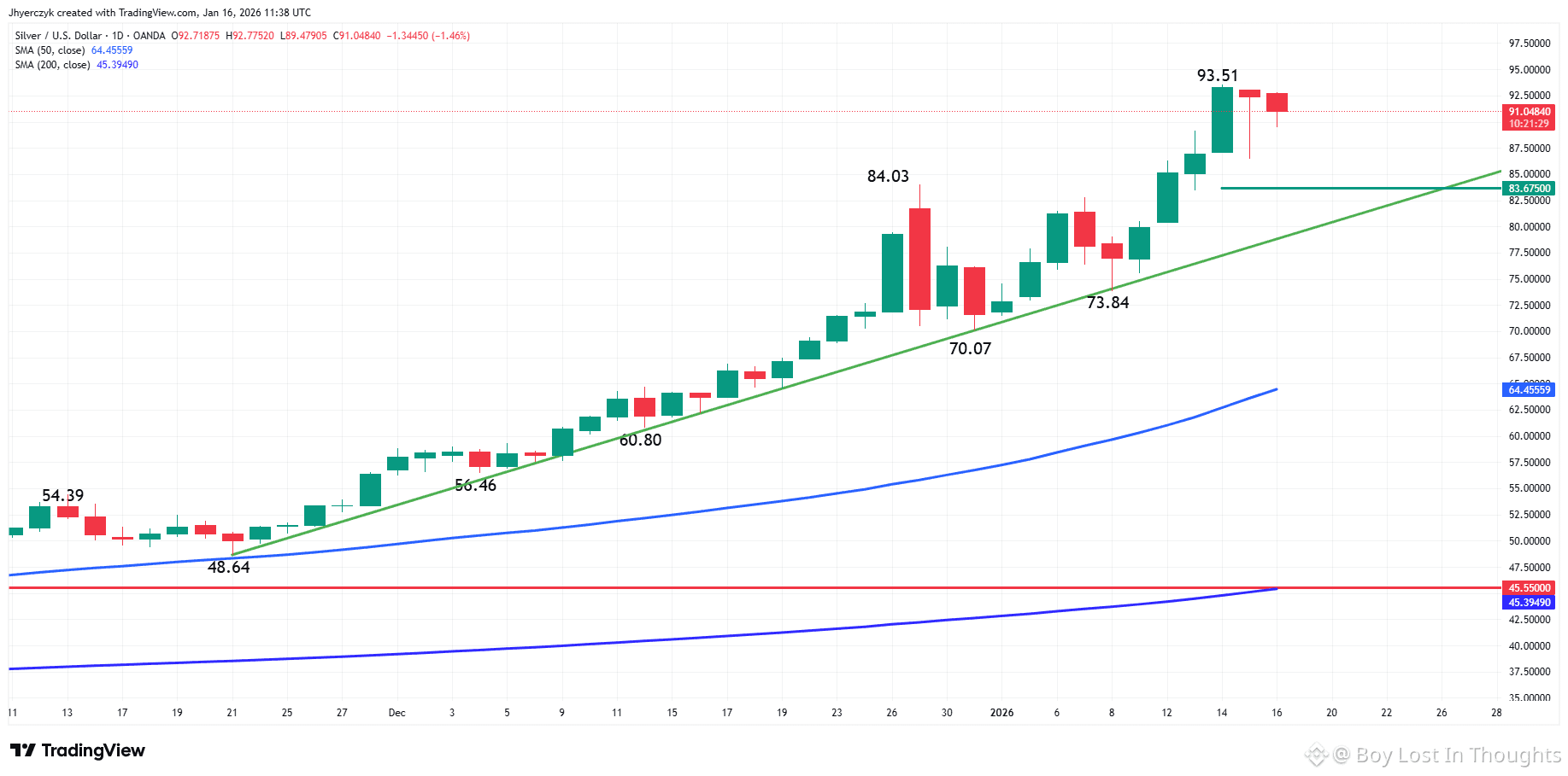Silver (XAG/USD) maintains a solid bullish trend, backed by strong technical indicators and supportive fundamentals—including anticipated Fed rate cuts and robust industrial demand. While short-term factors like easing Iran concerns have triggered profit-taking, the larger uptrend remains unbroken. Traders now face a tactical decision: either pursue a breakout above $93.51 or wait for a dip toward the value area around $83.67. Key support levels lie at $83.67 and $78.88, with long-term moving averages providing a safety net. Regardless of short-term fluctuations, silver's structural outlook remains positive.
