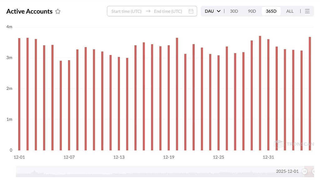 Entro dicembre 2025, la rete registrava 3.31M di account attivi giornalieri, con persone che effettuano transazioni, costruiscono, scambiano e interagiscono sulla blockchain ogni singolo giorno.