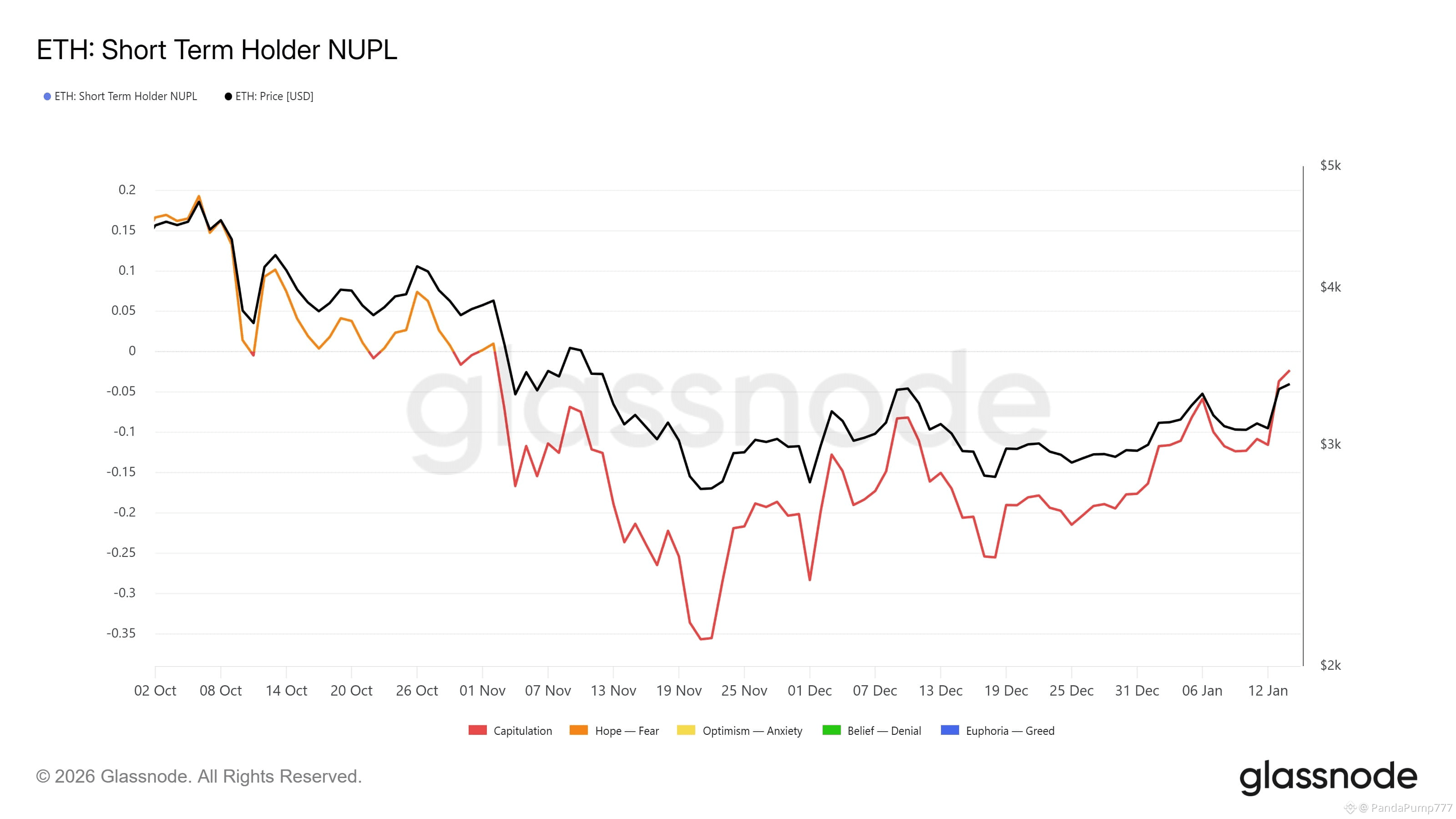 3. Благоприятная метрика прибыли/убытков: Показатель STH NUPL (чистая нереализованная прибыль/убыток краткосрочных держателей) всё ещё находится в зоне капитуляции. Это значит, что многие недавние покупатели пока не фиксируют прибыль, что ограничивает продавцов и снижает давление на цену на ранней стадии роста.