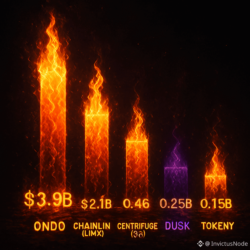 - ONDO lidera com US$ 3,9 bilhões, consolidando-se como referência em tokenização de ativos financeiros.